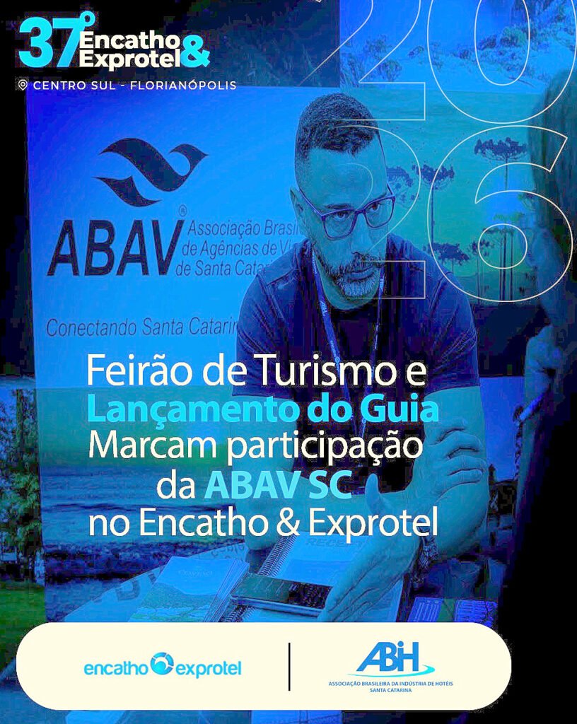 A ABIH-SC anunciou no dia 22 de abril, data em que se comemora o Dia do Agente de Viagens, anunciamos a participação da ABAV-SC no Encatho & Exprotel 2026, que acontece de 11 a 13 de agosto, no CentroSul, em Florianópolis, com o tema “Do Check-in à Conexão: