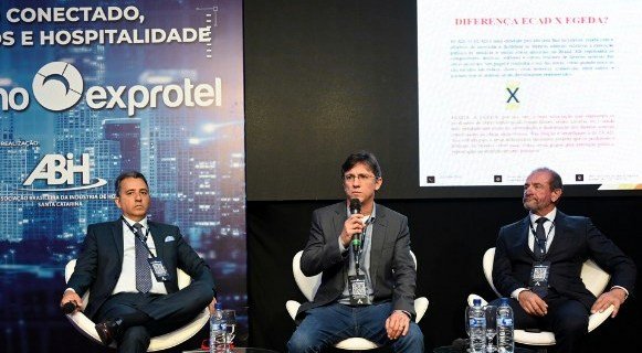 Os advogados Huilder Magno de Souza e Neilor Schmitz foram os especialistas convidados pelo Encatho para atualizar os hoteleiros sobre as novidades jurídicas que afetam as operações dos empreendimentos. Com mediação do hoteleiro Luciano P. Oliveira, os especialistas explicaram primeiro sobre o Egeda, que busca arrecadar direitos autorais de filmes, séries e outros conteúdos transmitidos em plataformas ou áreas comuns em ambientes hoteleiros.