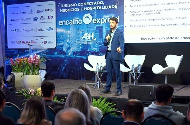 A integração entre pessoas, lugares e propósito foi o destaque da palestra “Gestão de Destinos: Inovação e Responsabilidade”, apresentada pelo consultor e especialista Bruno Wendling no 36º Encatho & Exprotel, na Sala Joaquina. O evento reuniu hoteleiros, gestores públicos e empresários interessados em novas estratégias para o desenvolvimento turístico sustentável.